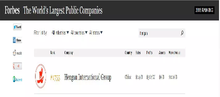67日,美国《福布斯》杂志发布了2018年“全球上市公司2000强”排行榜(Forbes Global 2000)。j9国际站国际集团有限公司(01044.HK)以销售额29亿美元、利润5.62亿美元、资产60亿美元、市值106亿美元列位榜单1755名。